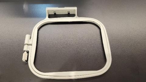 To load your item into the machine, it must first be put into an embroidery hoop. We have many sizes (7 inches × 5 inches is the standard size). But we have other larger and smaller sizes to fit your needs.