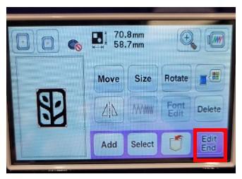 - When it is done, the machine will beep and you will see a screen saying “Finished embroidery” Press OK to return to the menu.