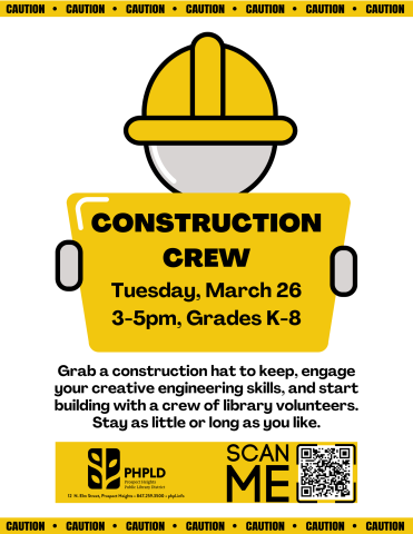 Grab a construction hat to keep, engage your creative engineering skills, and start building with a crew of library volunteers. Stay as little or long as you like.