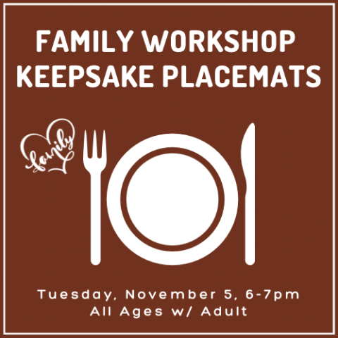 Experience a delightful crafting session as you create adorable keepsake placemats! Enjoy snacks and laughter while making lasting memories together. Each family member can design their own mat, which will be laminated for durability.
