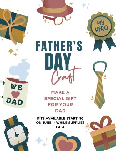 Primary tabs Upcoming List Month Week Day Remind Me Add To My Calendar Print Share Program Type: Crafts Age Group: Youth Please note you are looking at an event that has already happened. Program Description Event Details All ages. Make a special gift for your dad. Pick up your kit starting on June 1, while supplies last.