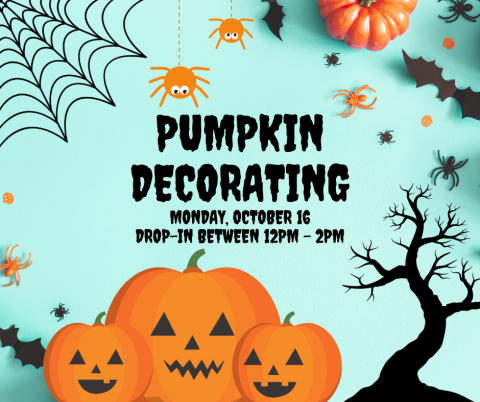 Pick one out and enjoy decorating it between 12pm - 2pm. One pumpkin per child, birth to grade 12.
