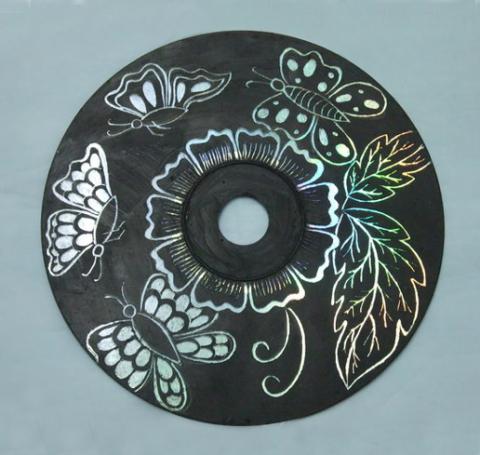 Upcycle CDs by scratching a decorative design for a unique piece of garden art.