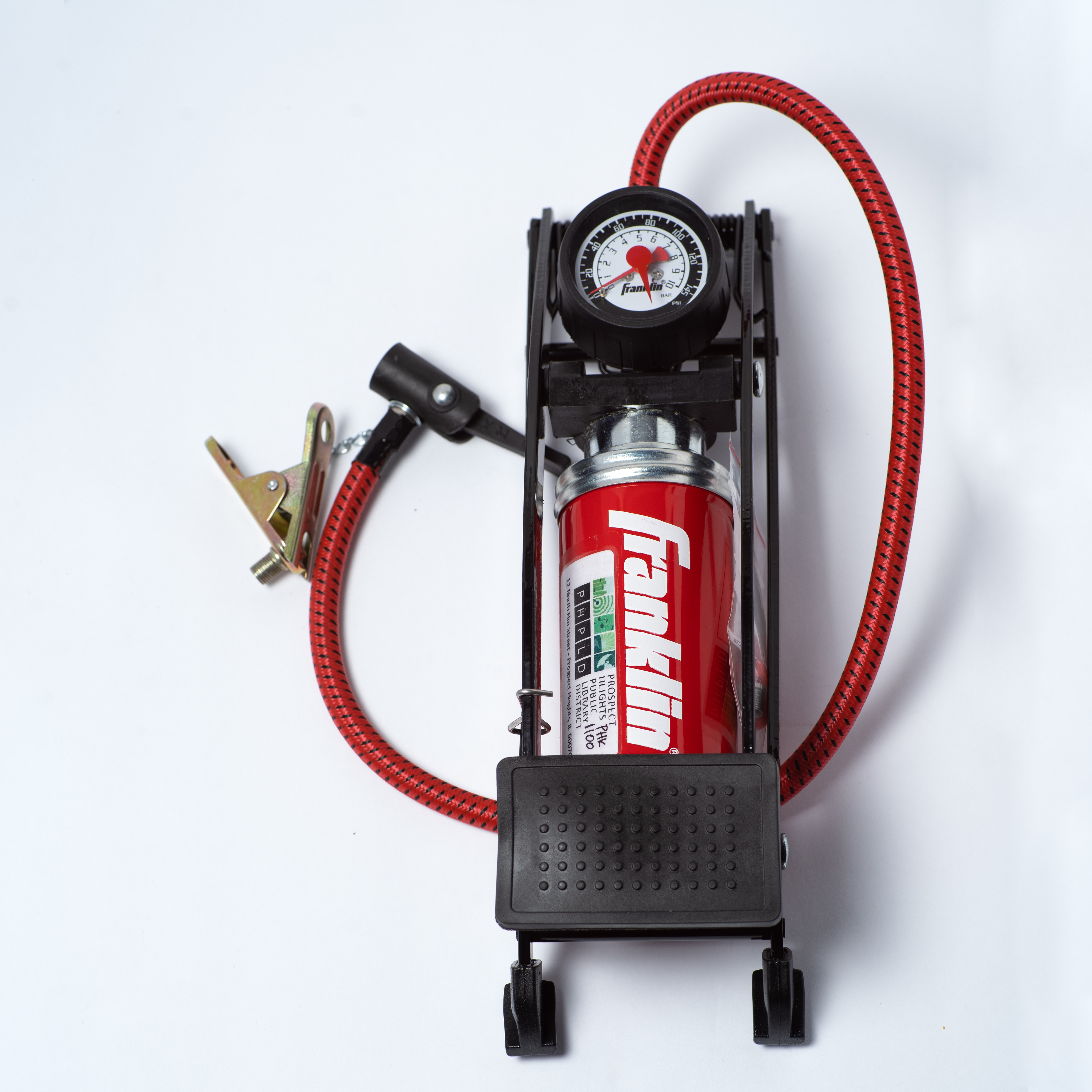 A foot pump to help with deflated bike tires.