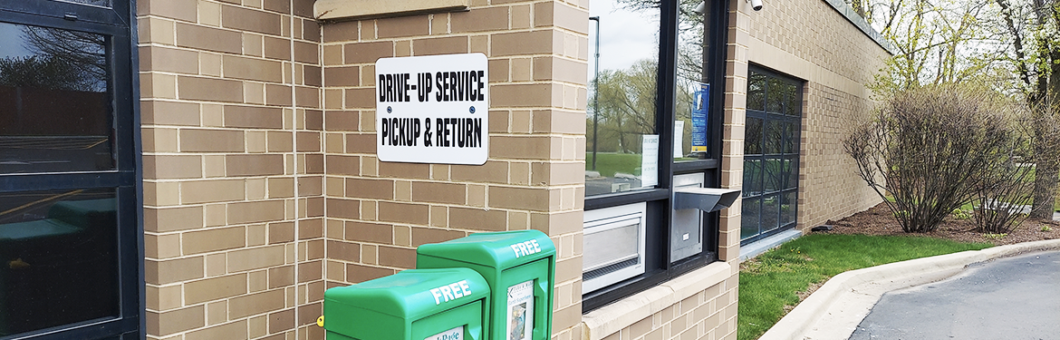 The Library is pleased to offer drive-up service. The drive-up service window is adjacent to the book drop at the back of the building and is available during the Library’s service hours.
